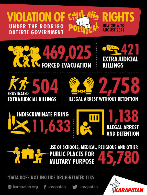 For the past five years, the administration of Rodrigo Duterte had proven to be a deadly crisis of its own, and his sycophants and spin doctors had desperately attempted to conceal the foul stench of decay through a convoluted gyration of lies and hollow illusions of progress, order, and change. The onslaught of the COVID-19 pandemic shattered these illusions as the virus brought the world into a standstill and forced it to confront a crisis that had long been in the offing.Yet even a public health emergency did not halt despots like Duterte along with his cabal of rabid red-taggers, seasoned war criminals, and notorious human rights violators from unleashing the rotten contagion of fascism and open rule of State terror upon the people.Stripped of all but the hollowest pretenses of democratic and popular rule, Duterte entered his last year in power with his anti-democratic agenda in full throttle, all under the deceptive garb of a “new normal.” What had been exposed for everyone to see were not really new, but there were now the widening cracks just beneath the ice-thin surface of Duterte’s illusion of popular support and a strong State: worsening socio-economic inequality and joblessness, blatant neglect of basic social services and people’s welfare, massive corruption scandals, a ballooning national debt, mass deception and organized disinformation, and a brutal toll of human rights violations growing bloodier by the day.